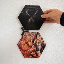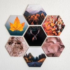 Creëer een unieke en gepersonaliseerde uitstraling met hexagons. Een populair zeshoekig paneel met daarop een eigen foto, print of patroon. Je bouwt eenvoudig je collage uit met nieuwe panelen.