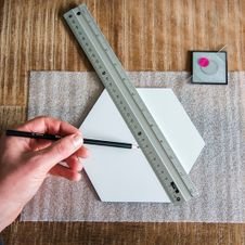Leg de hexagons eerst neer in de gewenste vorm, zo weet je hoe je ze kan ophangen.