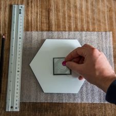 Plaats de hexagon tegen de muur en druk deze goed vast.